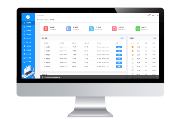 工作台是系统集成管理系统的首页,提供最新工作动态、待办事项、最新公告、最新任务等信息。